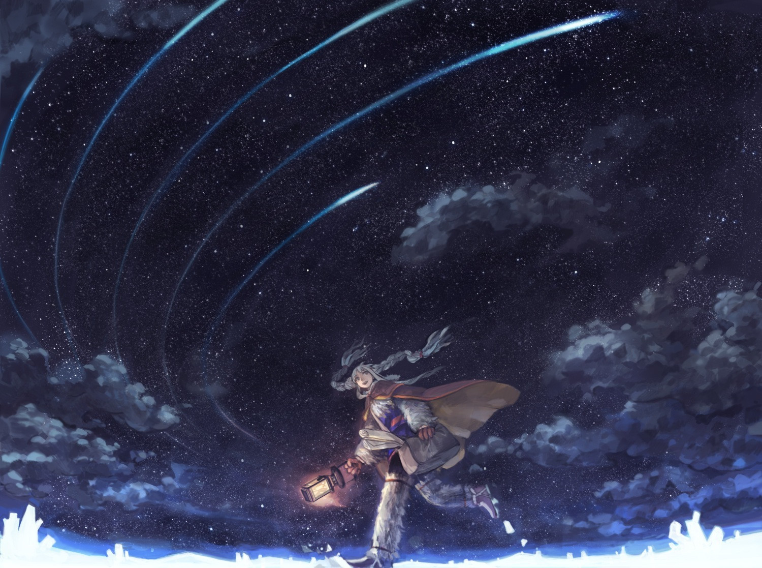 流星群が平行に流れてるのはどうかと。