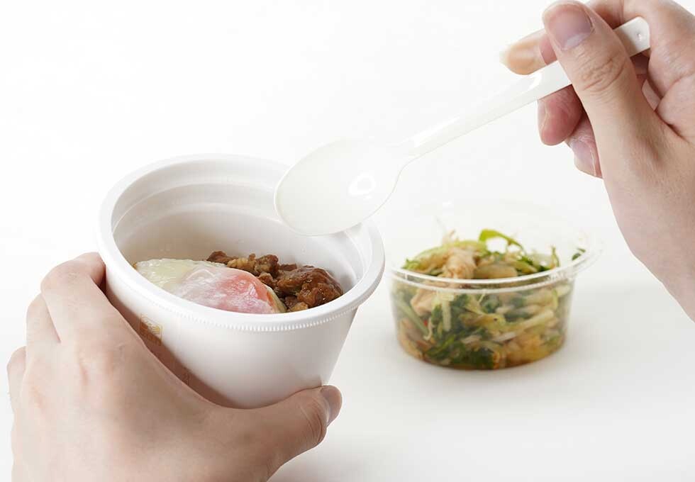 容器は片手でしっかりと握れるくらいの大きさ。一般的な弁当の熱量は600〜700キロカロリーだが、一膳ごはんはその7割程度