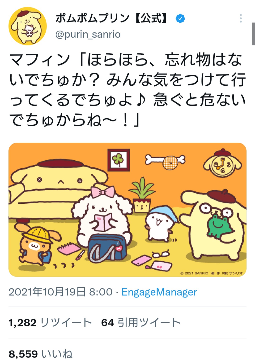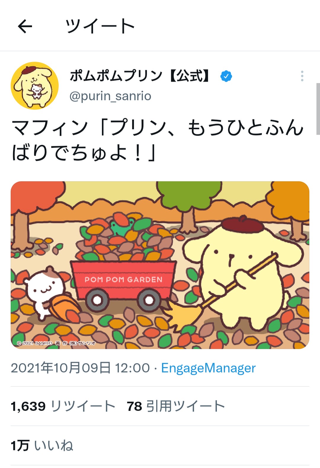 — ポムポムプリン【公式】 (@purin_sanrio) October 10, 2021
