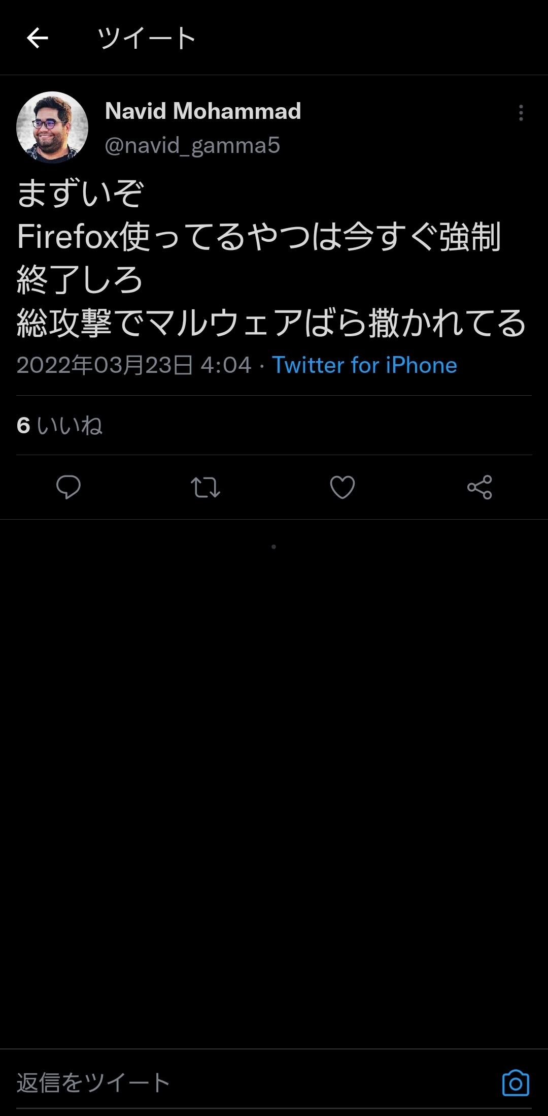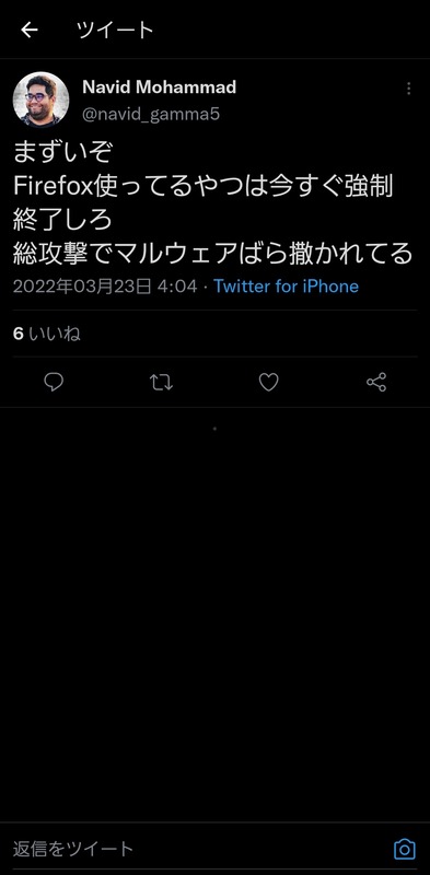 116 名前 : 暇つぶしの名無しさん投稿日:2022年03月23日 23:53 ▼このコメントに返信 今まさにFirefoxから書き込んでるけど、なんともないで?