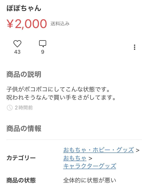 28 名前 : 暇つぶしの名無しさん投稿日:2022年11月11日 08:09 ▼このコメントに返信 映画の死霊館で有名なアナベル人形も売りに出したら買うアホがおるんかね?