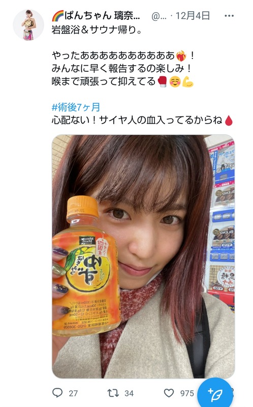 ぱんちゃん璃奈、ついに復帰戦決定を匂わせる「心配ない! サイヤ人の血入ってるからね」