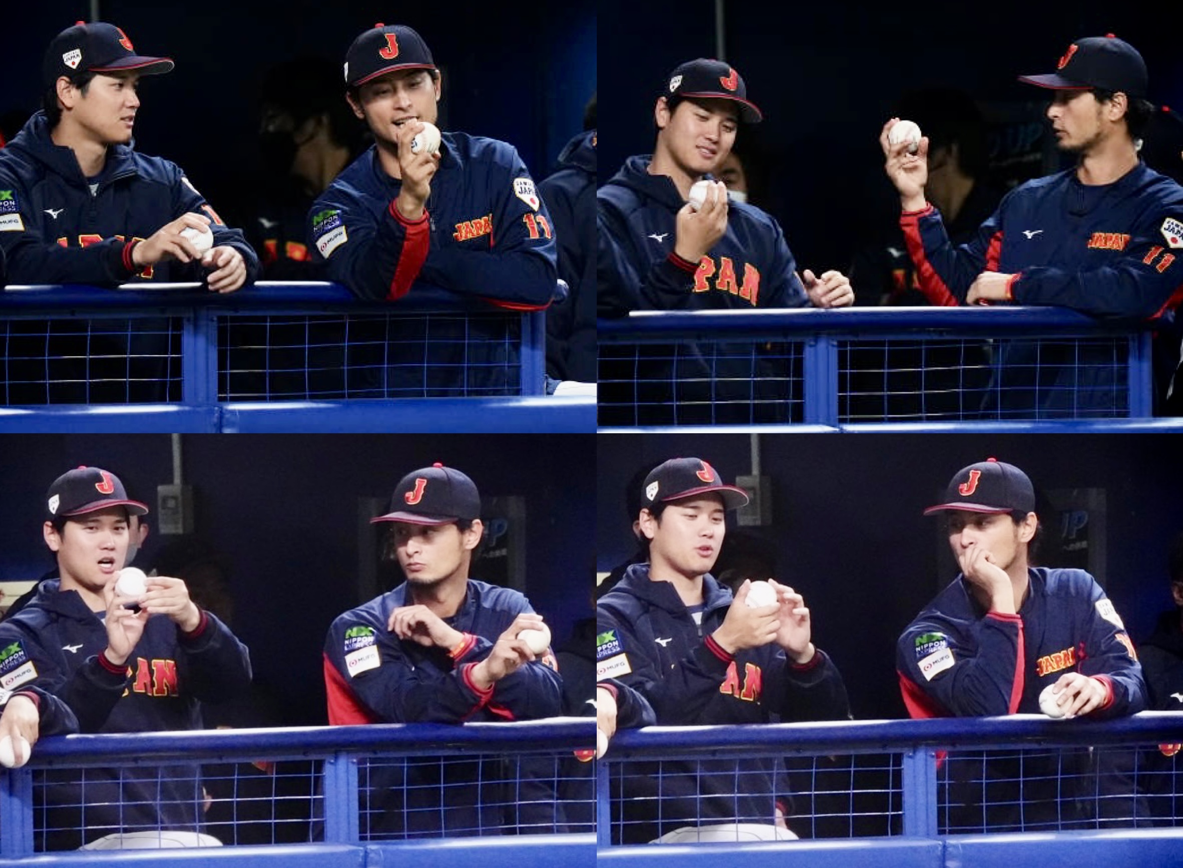 メジャー組は試合には出場しませんでしたがベンチからチームメイトを見守り意見交換する様子も🔥
