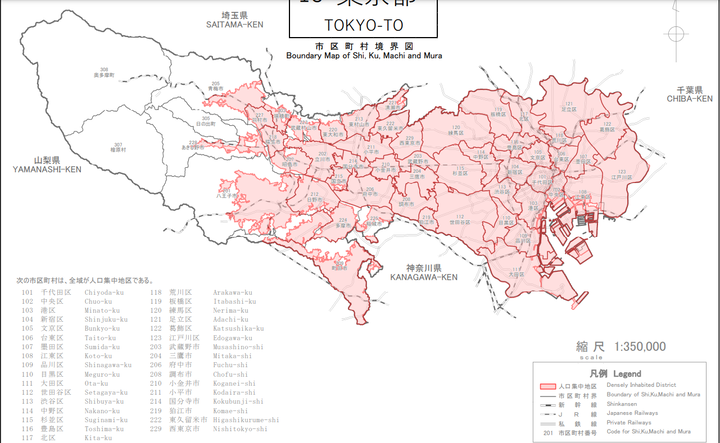 東京は青梅や八王子あたりまでは人口集中地区なんやな
