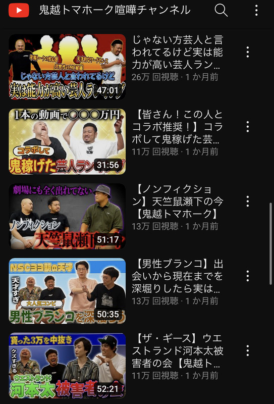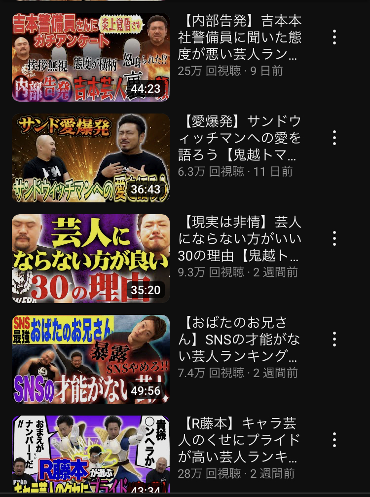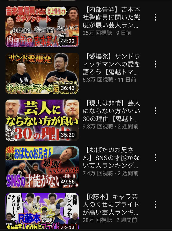 業界裏話とかもっと有名な先輩芸人持ち上げ動画とかYouTuberのパクリ企画とかばっかり