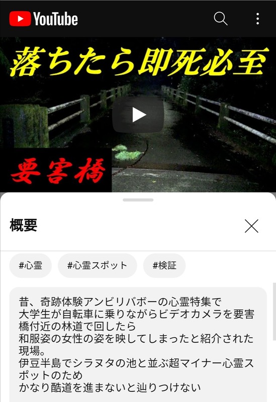 まあ心霊スポットというのは物理的に何か危ない原因があるから事故が多くて結果的に心霊スポットになってるだけやからな