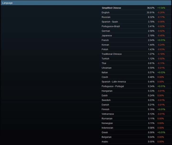 殆どの言語の利用者が減ってるし、英語のゲーマーすら減ってる