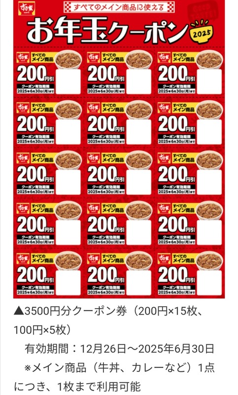 集客効果狙ってるから回数多くしてるんだろうけど、毎回クーポン持ってすき家に行くのが面倒臭い