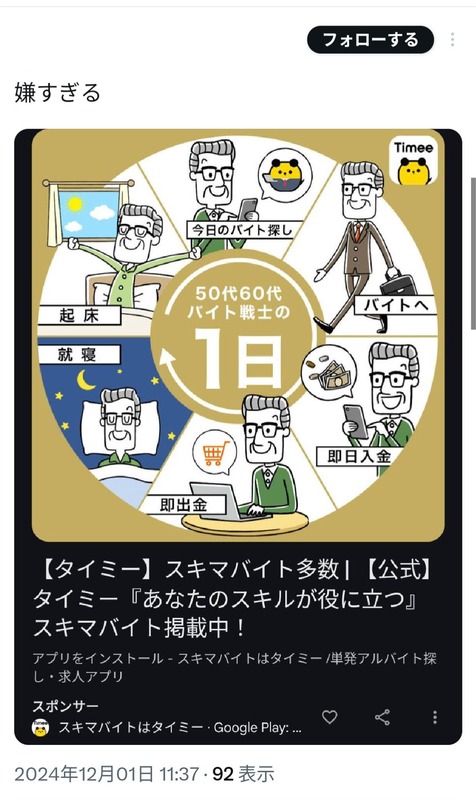 64 名前 : 暇つぶしの名無しさん投稿日:2024年12月07日 22:00 ▼このコメントに返信 毎日バイトするならタイミーじゃない方がええやろ